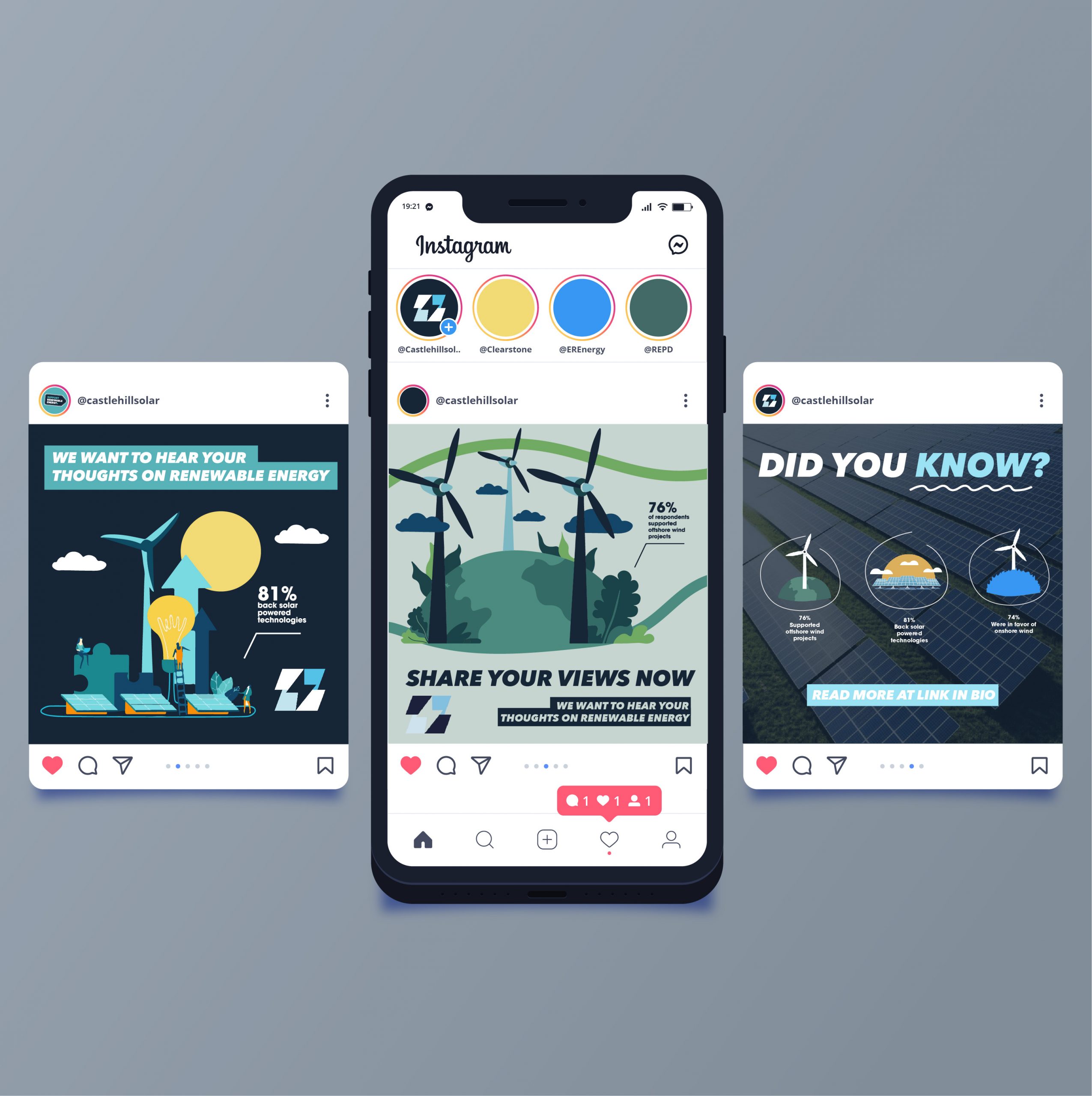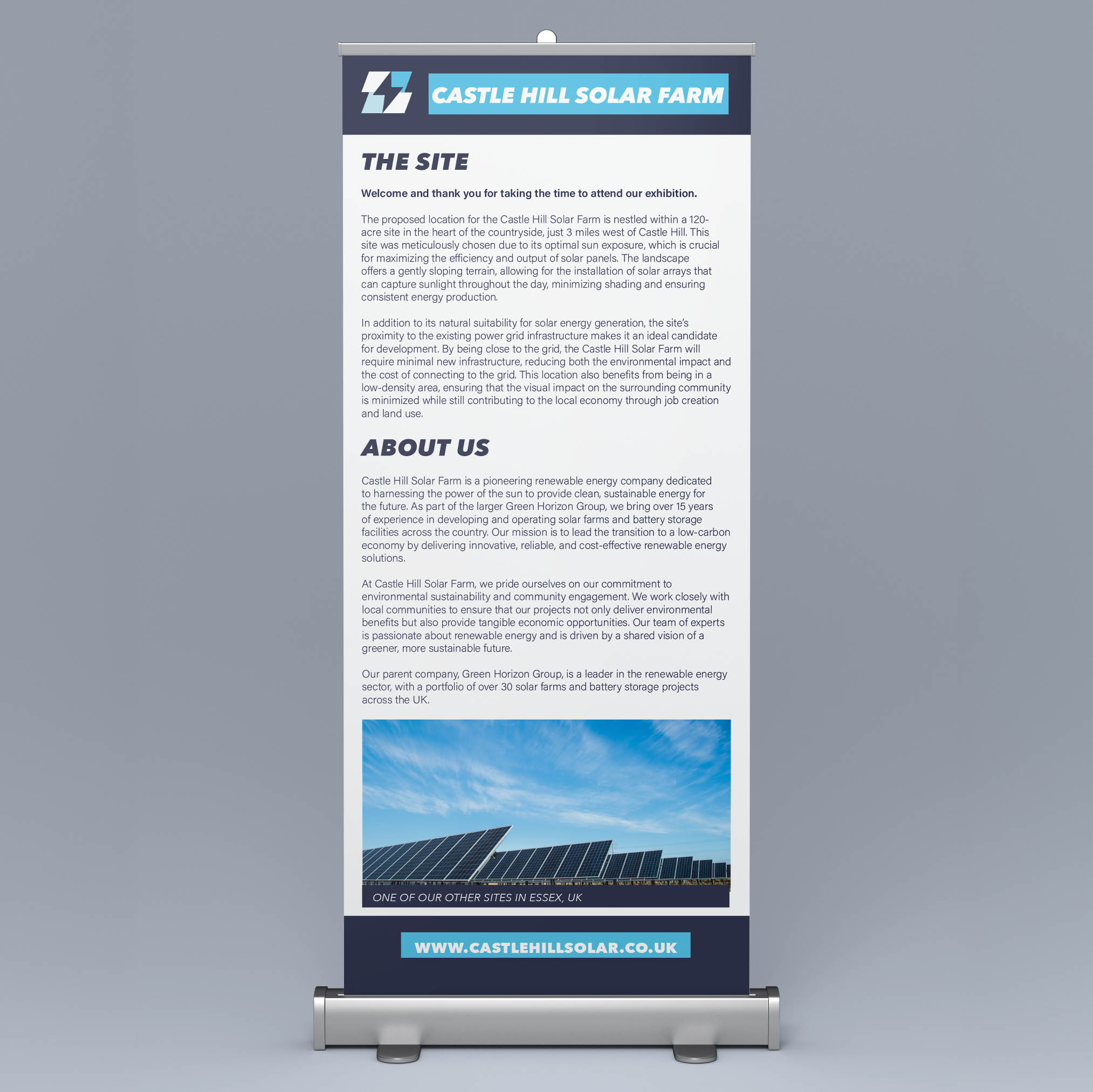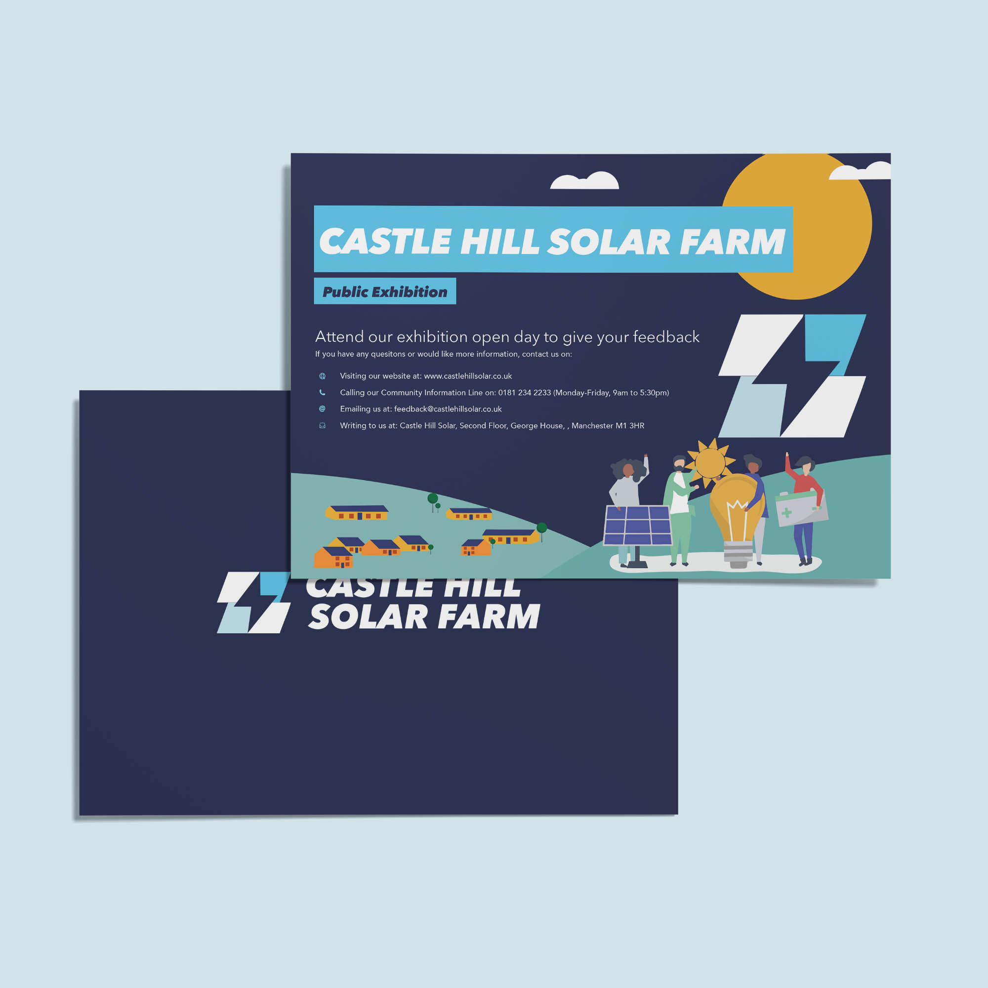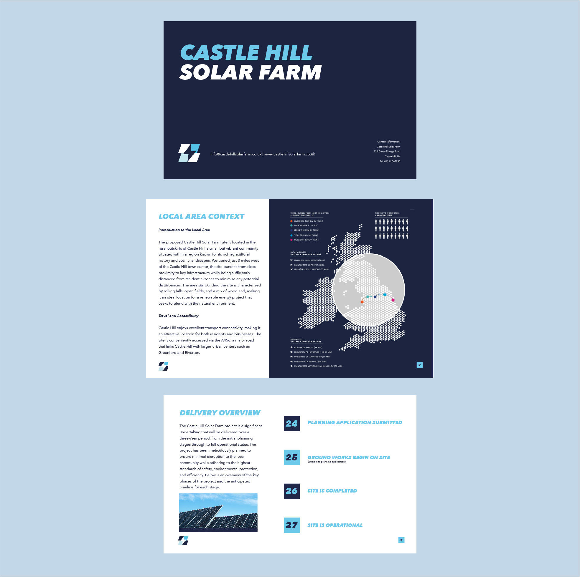 For Castle Hill Solar Farm, a concept for a forward-thinking solar energy company, I developed a brand identity and logo which then informed a comprehensive suite of printed and digital assets as part of a campaign to mobilse supporters. The brand I created exudes confidence with its clean, strong, and modern aesthetic. To enhance the accessibility of important content, I incorporated colorful vector drawings, making complex information more digestible and engaging for the audience.