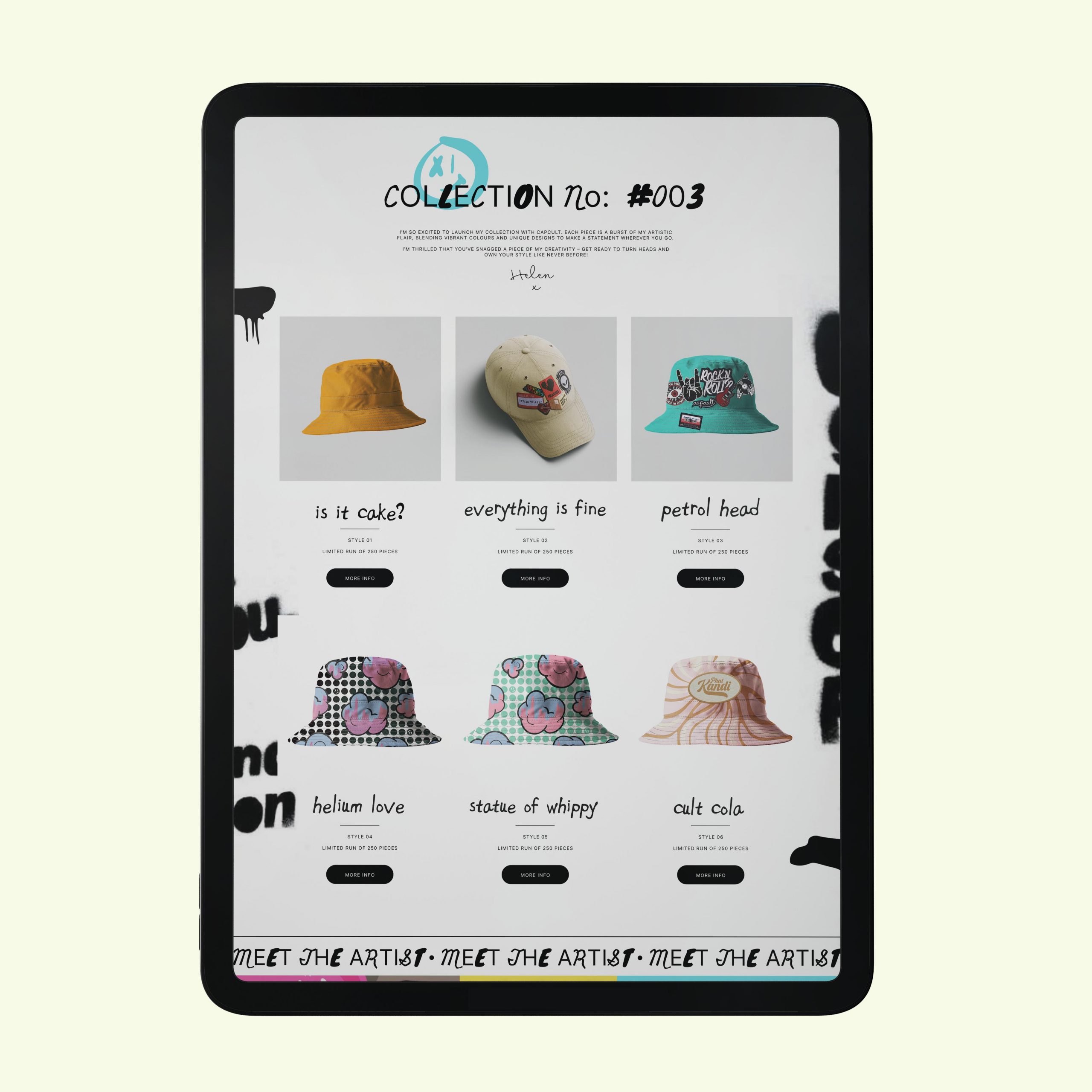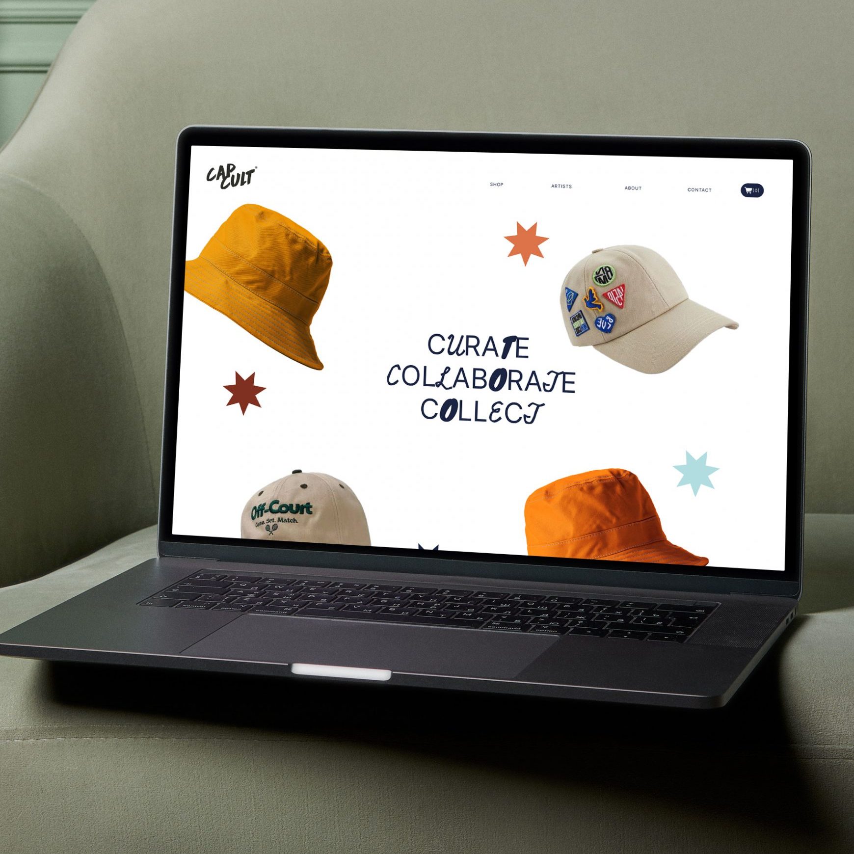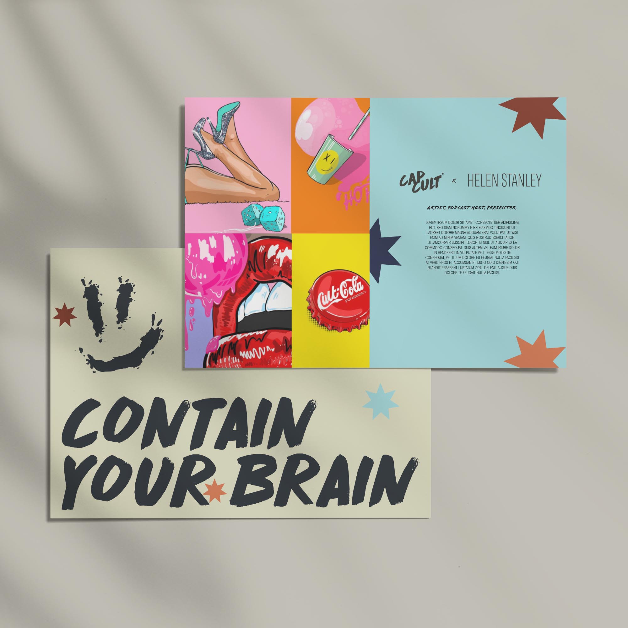 CAPCULT is a concept for a headwear brand which collaborates with artists, musicians and sports stars to produce limited edition collections of hats, caps and bucket hats. Each product will be designed in collaboration with the collection partner and will be marketed directly to their targeted audience as well as CAPCULTs wider reach. Because of this a versatile and flexible brand had to be designed which could be adaptable to endless styles which have to be merged with the brand through the artist collaborations. I crafted a raw and textural brand with a more muted and nature based colour palette, paired with experimental font combinations.
