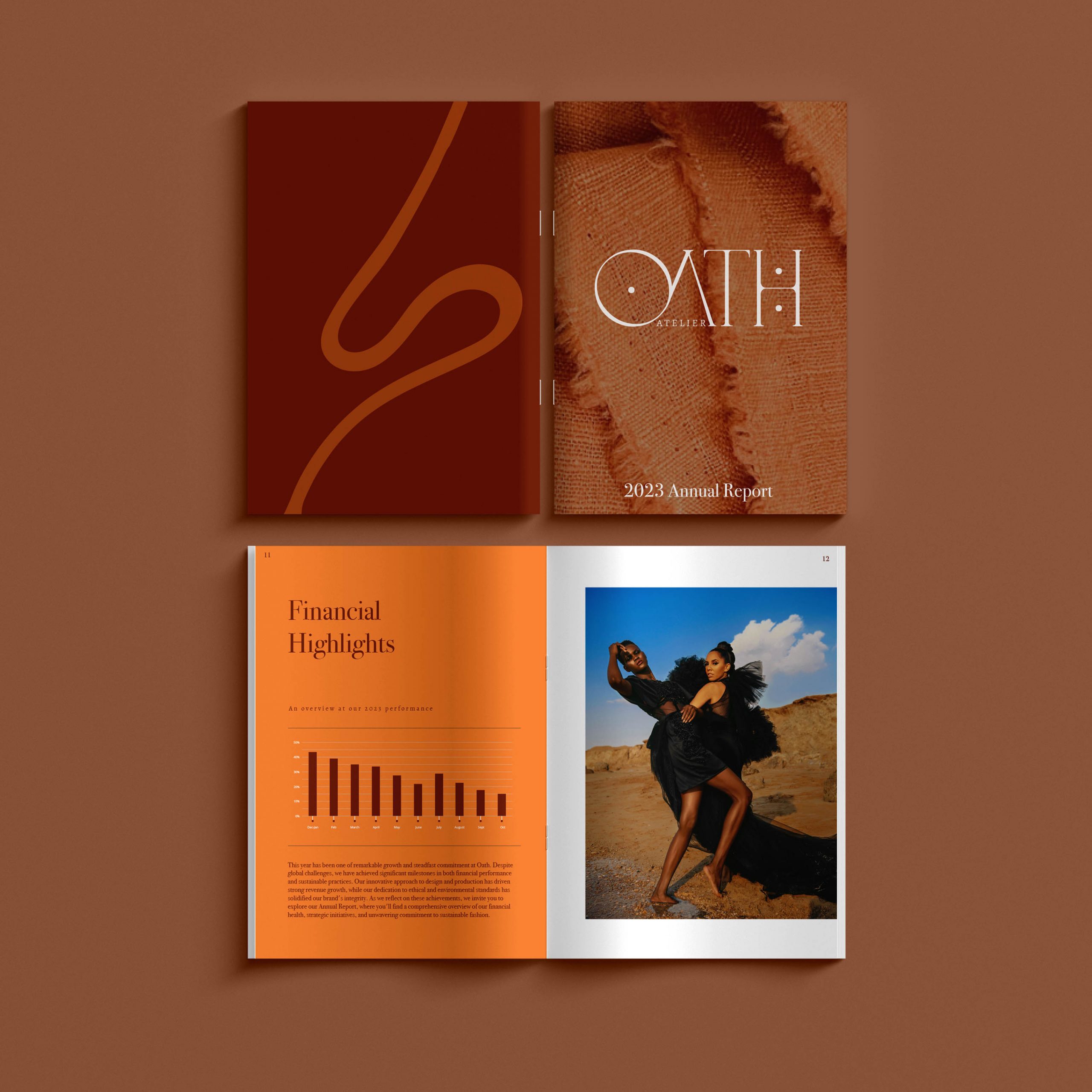 Oath Atelier is a sustainable first fashion brand using quality, clean fabrics for timeless and tailored clothing pieces. The brand sources most of its fabric from traders in India and because of this, the brand identity incorporated themes of exotic locations, stars and moons and luxury fabrics into its presentation. The brand was aimed at high income earners with a commitment to shopping ethically and this informed my design decisions, especially across print projects sourcing sustainable materials for packaging and printed pieces.