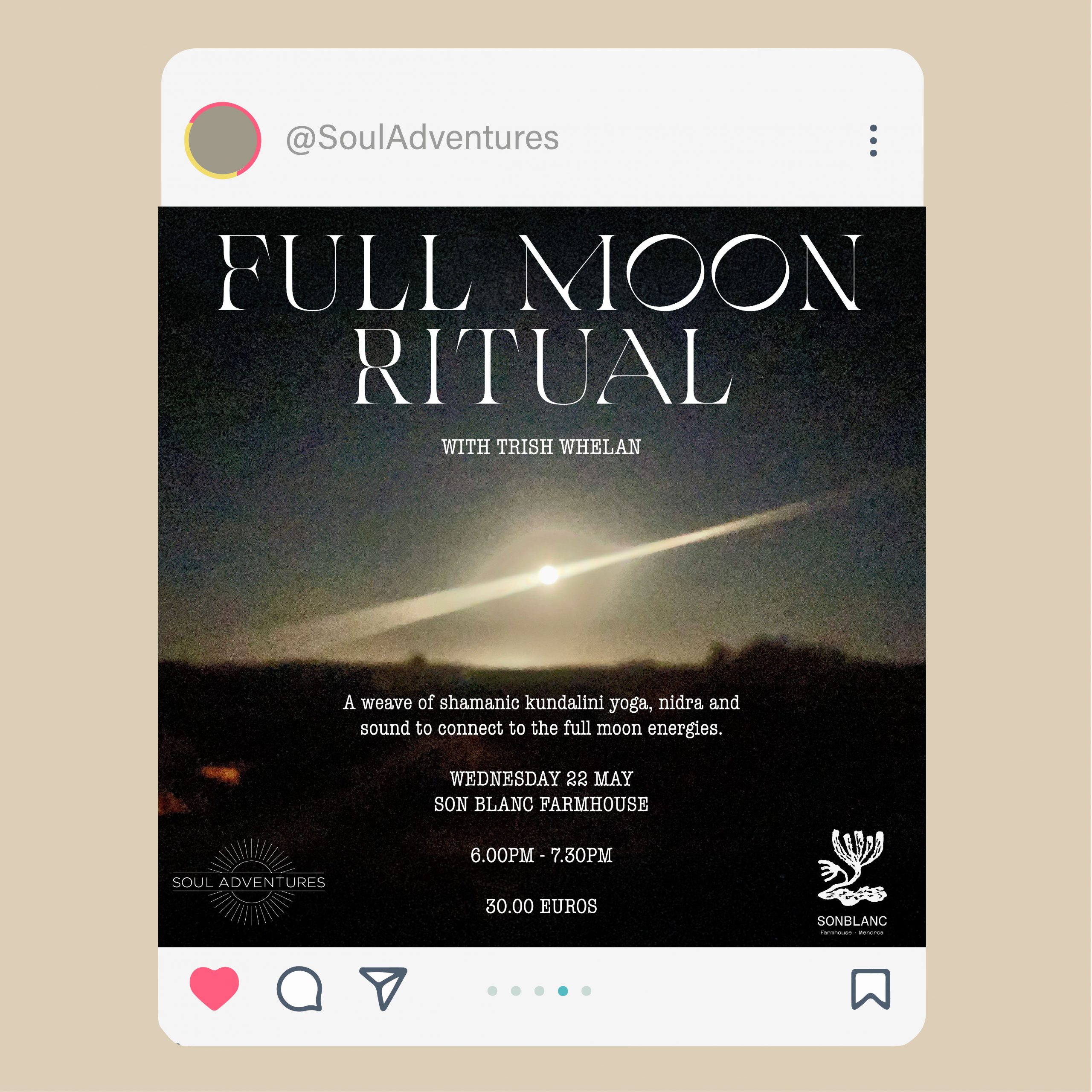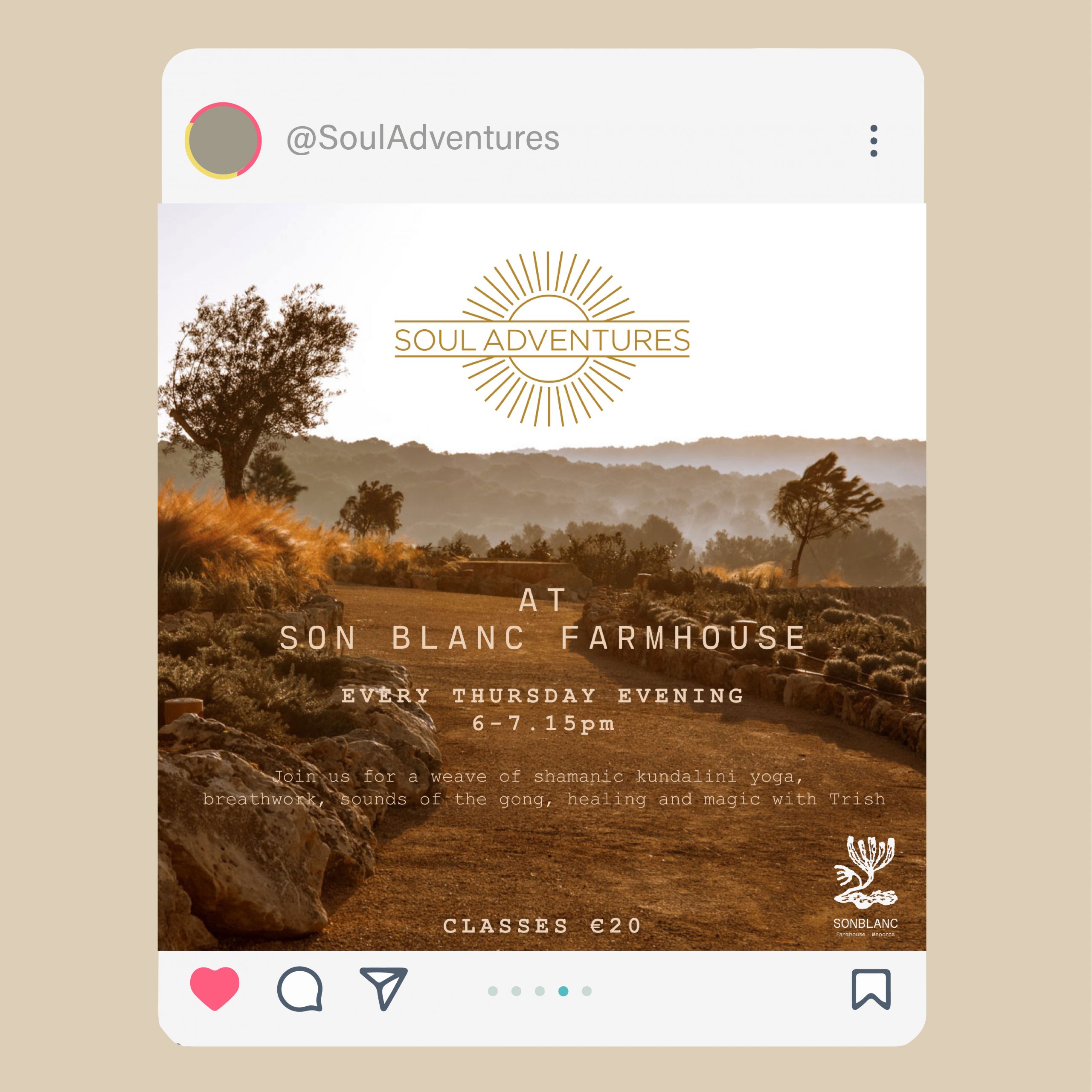 Ongoing digital and print support for a luxury spiritual retreat company offering both online and in-person classes in exotic destinations. In addition to the main brand, each retreat has its own distinct style and branding, applied across various types of social media content.